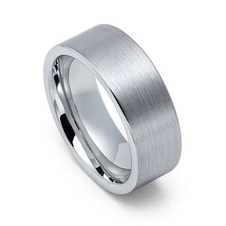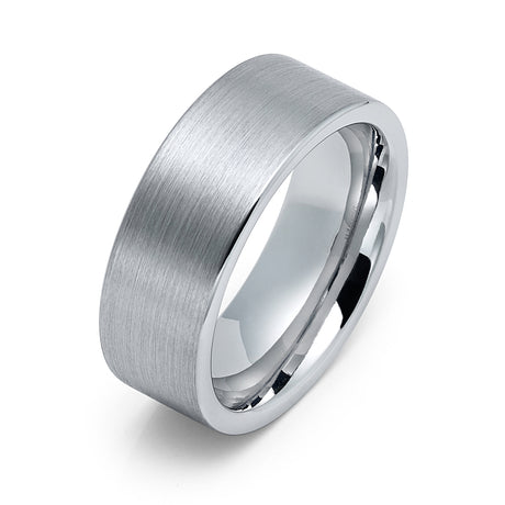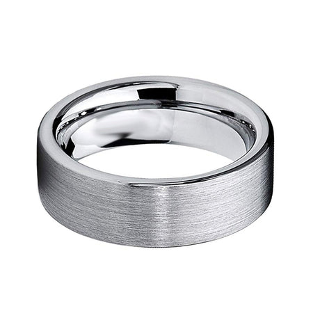 8mm - Silver Tungsten Wedding Ring, Brushed Flat Top Ring,