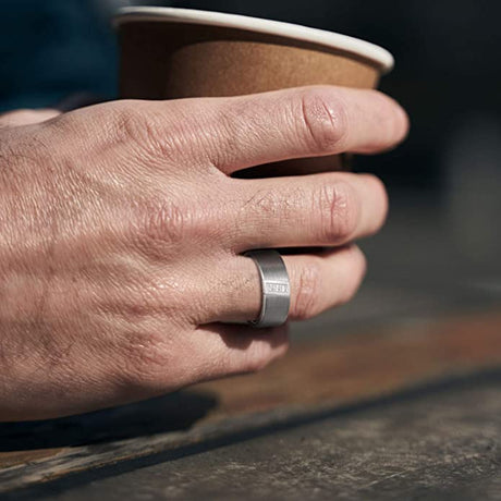 8mm - Silver Tungsten wedding Ring, Brushed Finish Stepped Edges,