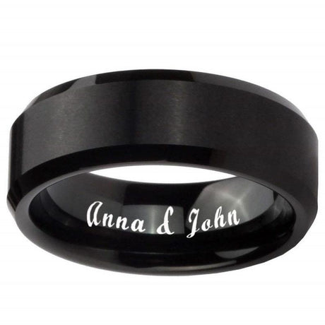 8mm - Tungsten Carbide Multi-Color Ring Grooved Black Matte Finish Beveled Edges Engagement Ring