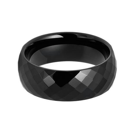 8mm Black Diamond Faceted Tungsten Carbide Wedding Ring