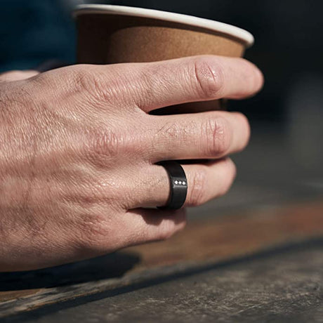 8mm Black Brushed Tungsten Wedding Band with 3 Cubic Zircon Diamonds