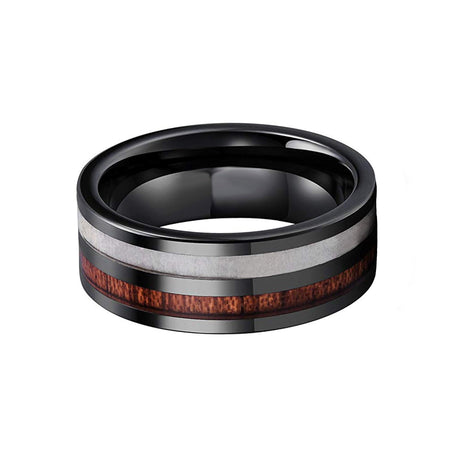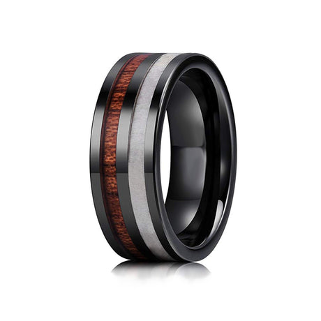 8mm Black Ceramic Wedding Ring with Wood & Antler Inlay