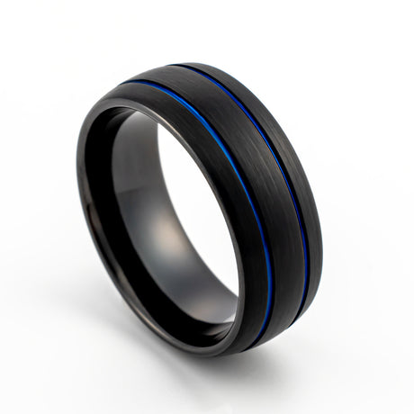 - 8mm Mens Black Tungsten Wedding Band W/ 2 Blue Groove Brushed Center Dome ring $185.73Unit price /Unavailable- 1 color available