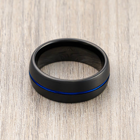 - 8mm Mens Black Tungsten Carbide Ring With Blue Groove Brushed Center Dome $185.73Unit price /Unavailable- 1 color available