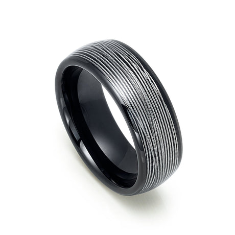 - 8mm Mens Black Tungsten Carbide Ring W/ Rolled Wire Inlay Domed Ring $185.73Unit price /Unavailable- 1 color available
