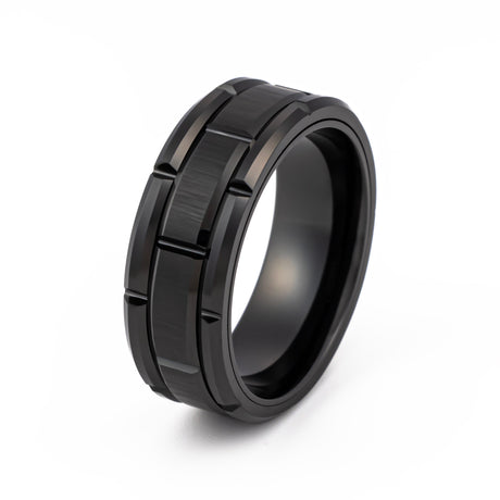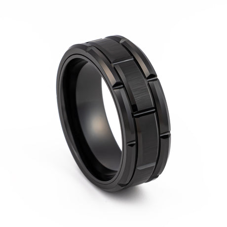 8mm- Mens Tungsten Ring Black Brick Pattern Brushed Sectional Diamonds