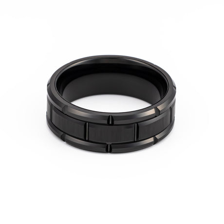 8mm- Mens Tungsten Carbide Rings Black Brick Pattern Brushed Wedding Band
