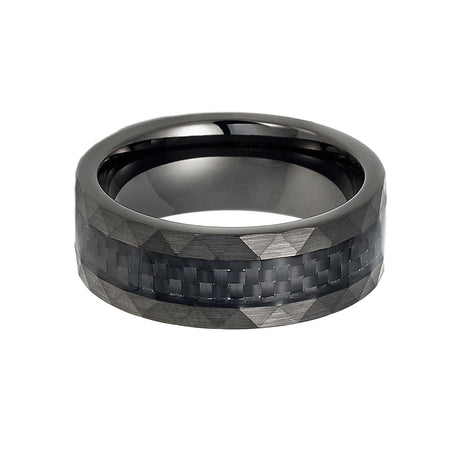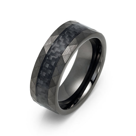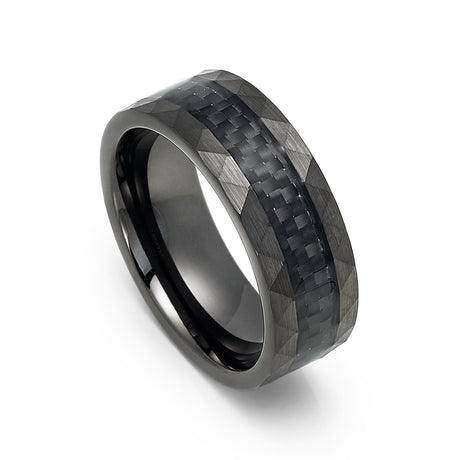 8mm- Black Tungsten Ring W. Center Carbon Fiber & Faceted Sides