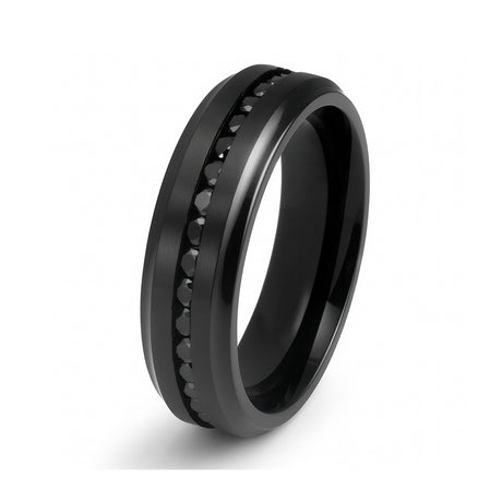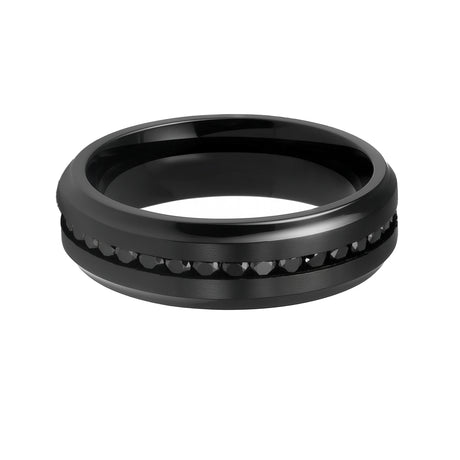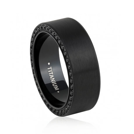 Mens Black Titanium Ring with Beveled Edges CZ Black Diamonds-8mm