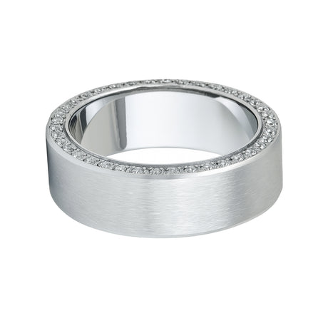 Men's Silver Titanium Wedding Band Brushed with Double Sided Full CZ Diamonds -8mm