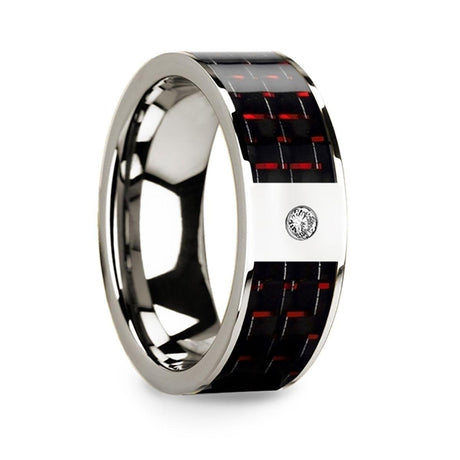 $3,117.27Unit price /UnavailableMens 14k White Gold Flat Wedding Ring with Red & Black Carbon Fiber Inlay & Diamond - 8mm