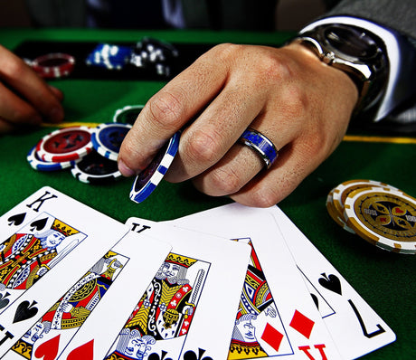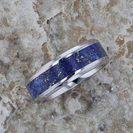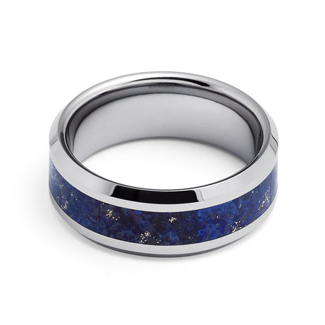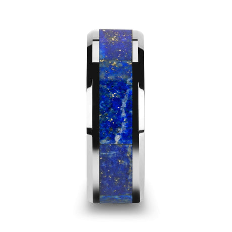 Men's Tungsten Wedding Band with Blue Lapis Lazuli Stone Inlay Ring, Beveled Edges - 8 mm