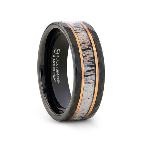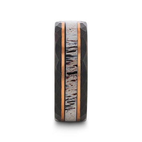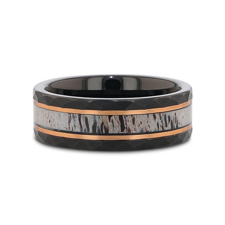 Rose Gold Tungsten Ring Black and Brushed Silver Wedding Band 6mm & 8mm