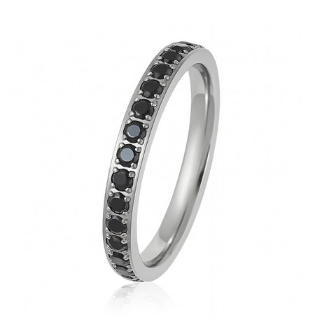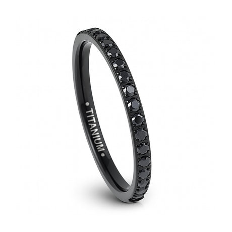 Silver Titanium Ring Full Eternity Black Cubic Zircon Diamonds 3mm