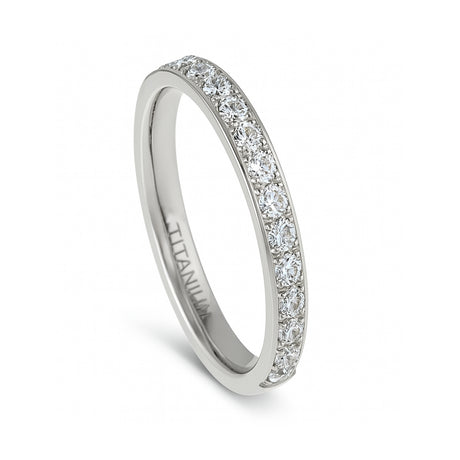 Silver Titanium Ring full Eternity Cubic Zircon Diamonds 2mm