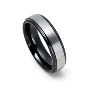 6mm - Black Tungsten Carbide Wedding Band With Stepped Edges Brush Center