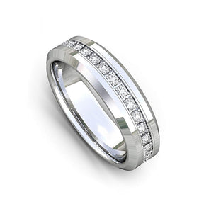 6mm - Tungsten Carbide Wedding Band Fully Stacked Cubic Zircon Beveled Edge Comfort Fit