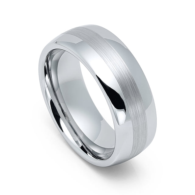 8mm - Silver Tungsten Wedding Band, Brushed Center High Polished Wedding Ring,