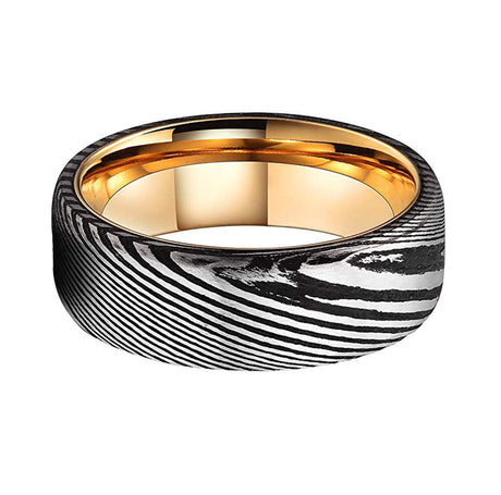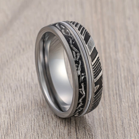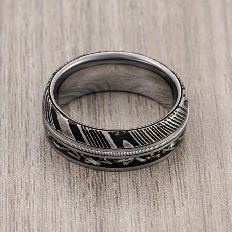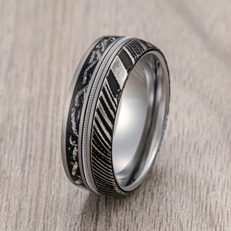 8mm - Tungsten Wedding Band Meteorite & Guitar String Inlay Damascus Steel