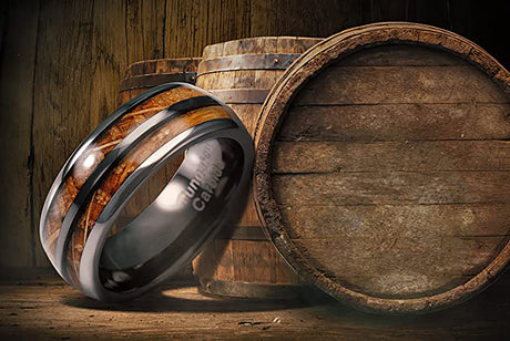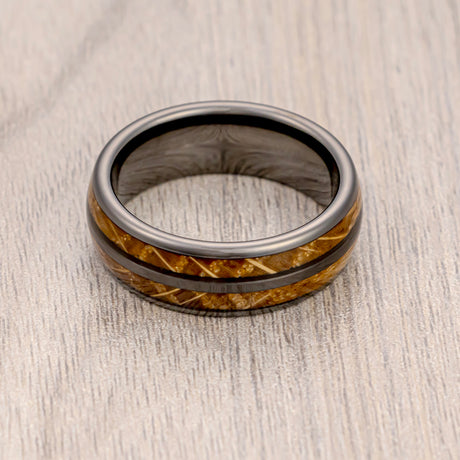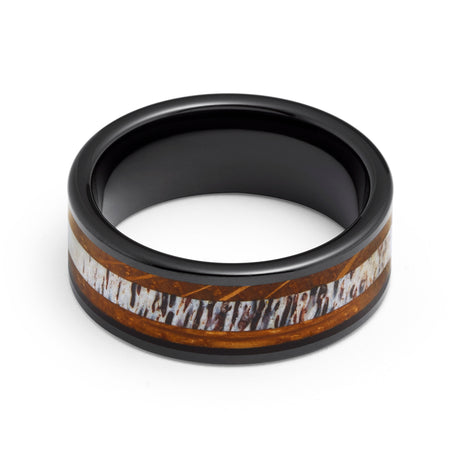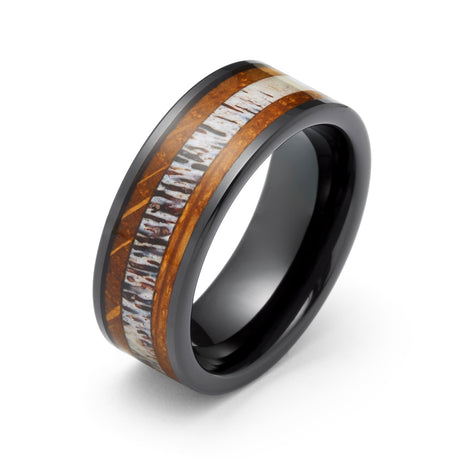 8mm - Tungsten Carbide Whisky Barrel Deer Antler Inlay Ring