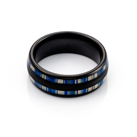 8mm - Tungsten Double Barrel Real Blue Wood Inlay Ring Wedding Band Dome