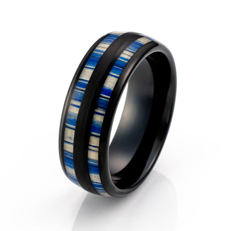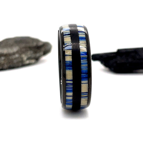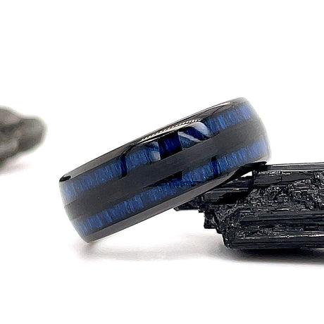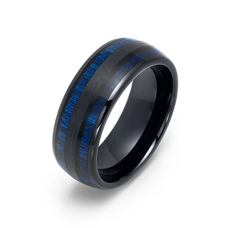 8mm - Tungsten Blue Dyed Bamboo Ring, Dome Wedding Band, Wedding Ring