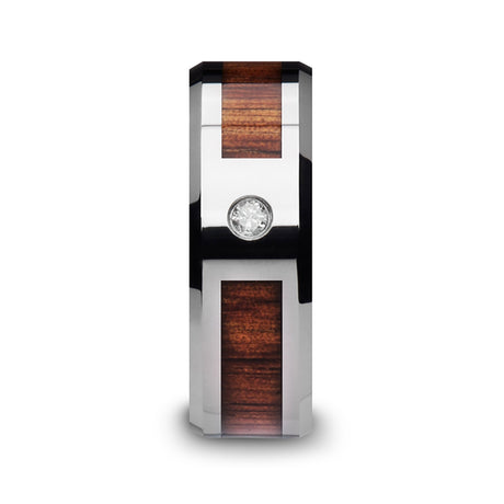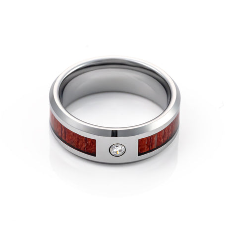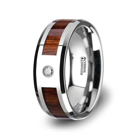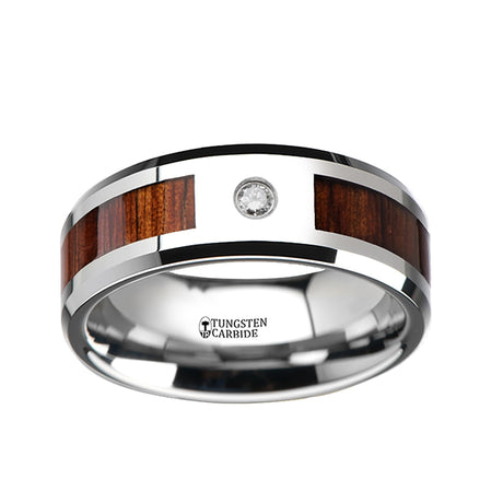 8mm Tungsten Carbide Wedding Ring W/ Single Diamond & Koa Wood band