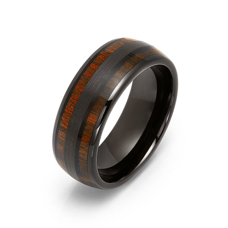 8mm - Tungsten Black Ring, Real Koa Wood Inlay Ring Dome Wedding Band