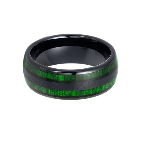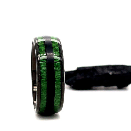 8mm - Tungsten Carbide Ring, Double Barrel Green Jade Wood Inlay, Dome shape,