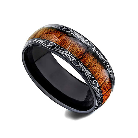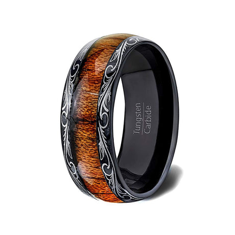 8mm - Mens Wedding Band, Black Tungsten Ring, Koa Wood Inlay, Dome Comfort Fit