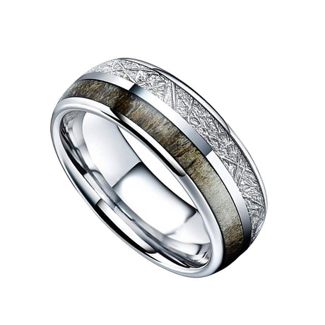8mm - Tungsten Wedding Band, Antler Meteorite Inlay, Man & Women, Tungsten Ring