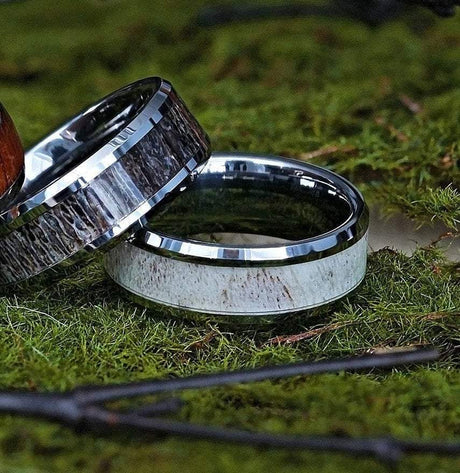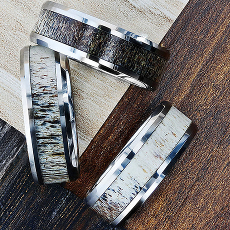 $229.38Unit price /UnavailableWHITETAIL, Tungsten Wedding Band, Polished Beveled, Off White Antler Inlay - 8mm
