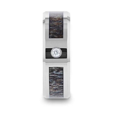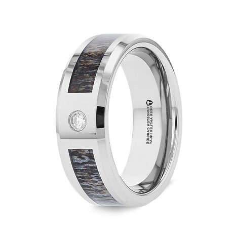 Tungsten Carbide Ombre Antler Inlay Polished Beveled Edges with Diamond Ring 8mm mens