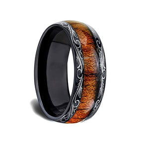 8mm - Mens Wedding Band, Black Tungsten Ring, Koa Wood Inlay, Dome Comfort Fit