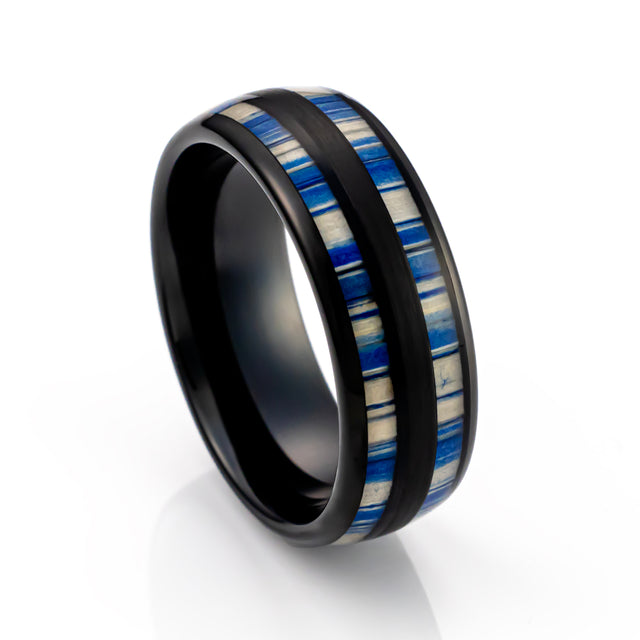 8mm - Tungsten Blue Dyed Bamboo Ring, Dome Wedding Band, Wedding Ring