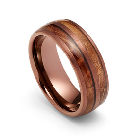 8mm Tungsten Carbide Espresso Double Wood Barrel Ring Dome shape