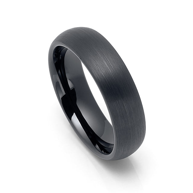 6mm Classic Dome Shape Gunmetal Brushed Tungsten Carbide Wedding Band