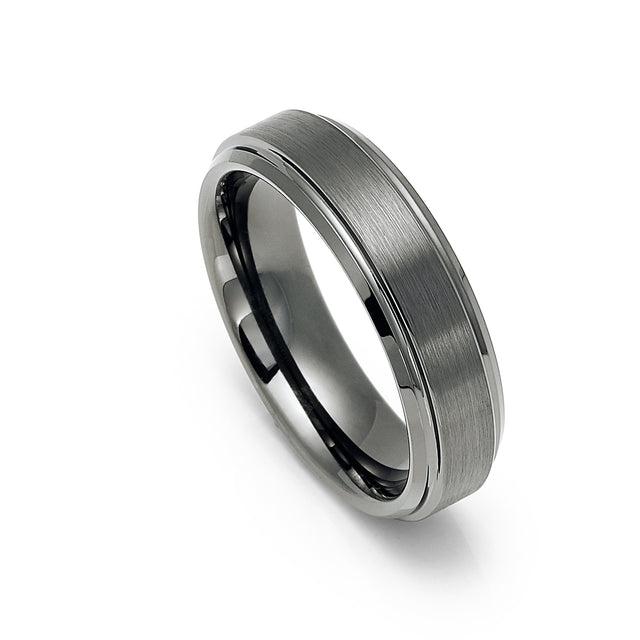 6mm Gun Metal Tungsten Carbide Wedding Band with Stepped Edges