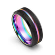 8mm - Tungsten Carbide Multi-Color Ring Grooved Black Matte Finish Beveled Edges Engagement Ring