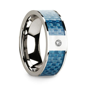 Flat 14k White Gold with Blue Carbon Fiber Inlay & White Diamond Setting - 8mm