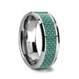 This bold and durable flat-profile Tungsten Carbide wedding band design by Thorsten features polished beveled edges and a premium light blue Carbon Fiber inlay.