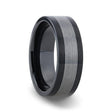 ENDAST Ceramic Inlay Black Tungsten Wedding Band With Flat Brushed Edges - 8mm