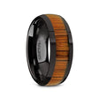 LINDEN Black Ceramic Polished Finish Mens Domed Wedding Band with Koa Wood Inlay - 8mm