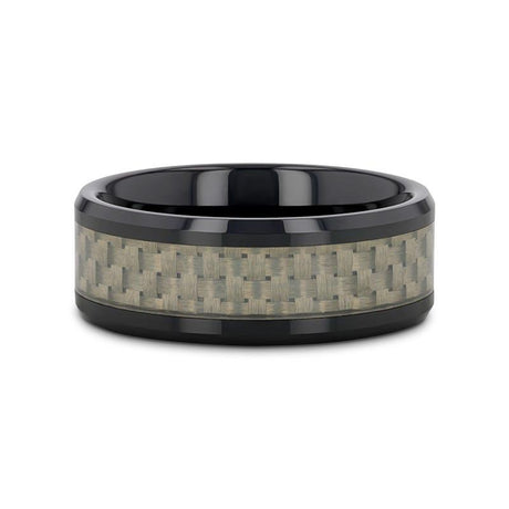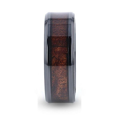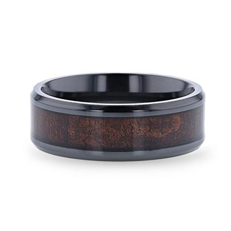 Brown Dinosaur Bone Inlaid Black Ceramic Diamond Band