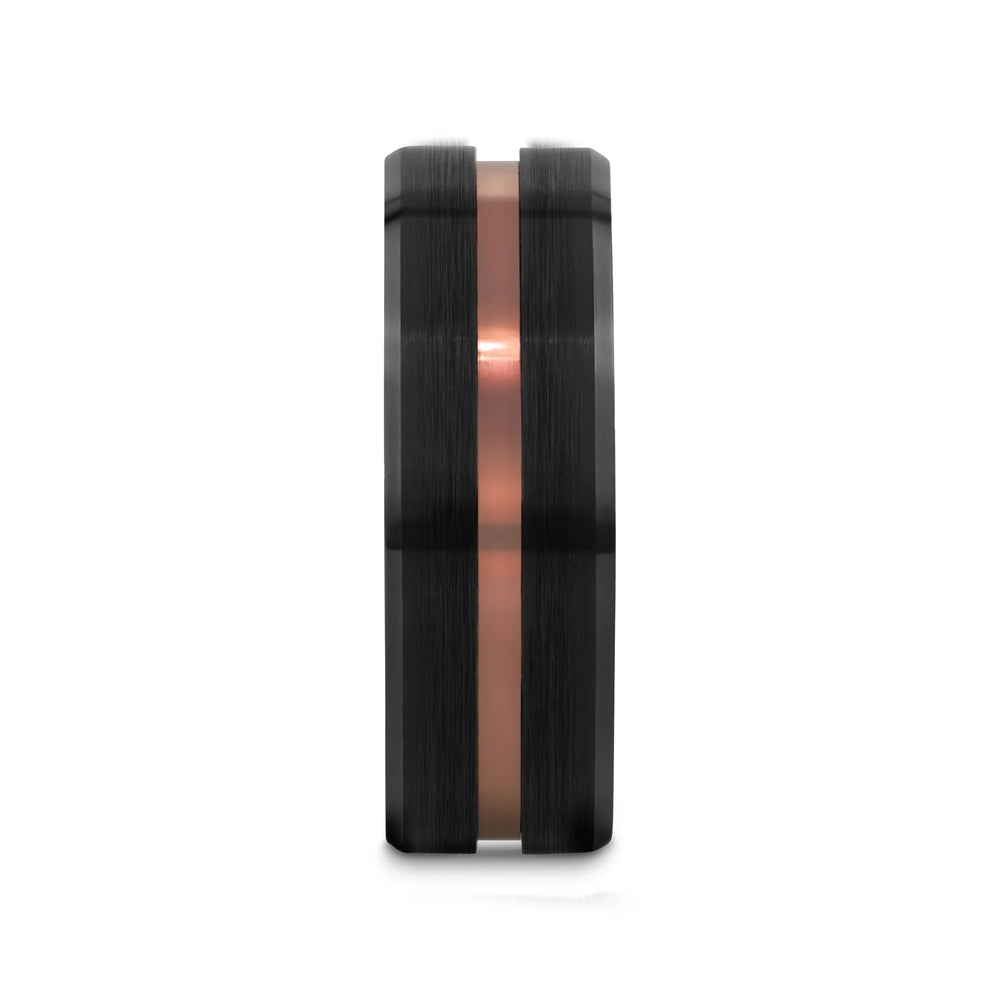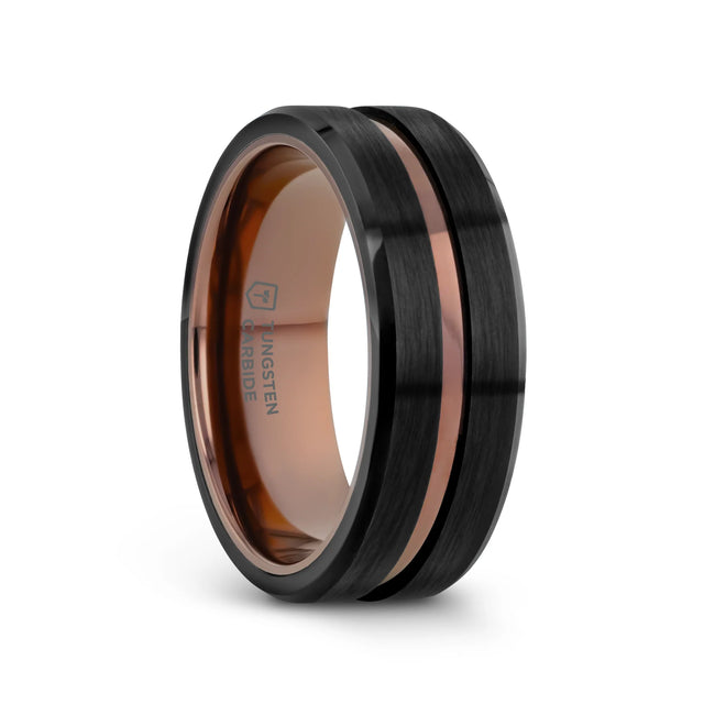 NEVAN Flat Brushed Black Tungsten Men’s Wedding Band with Espresso Groove Center - 8mm
