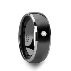GLENDALE Domed Black Ceramic Comfort Fit Wedding Band with Polished Tungsten Edges and White Diamond Setting - 8mm