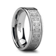 This unique highly-polished Tungsten Carbide wedding band by Thorsten features a very detailed and intricate laser engraved Celtic Cross pattern design that is flanked by dual offset grooves.