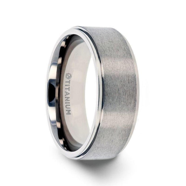RHINOX Brushed Raised Center Men's Titanium Wedding Ring with Polished Step Edges - 8mm