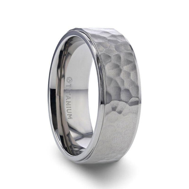 MINISTER Titanium Ring with Raised Hammered Finish and Polished Step Edges - 8mm
