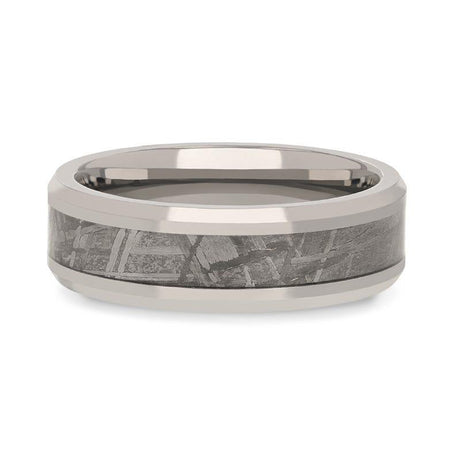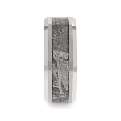 Flat 14k White Gold with Blue Dinosaur Bone Inlay and Polished Edges - 8mm
